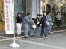 平成26年11月30日 場所 JR九州博多駅前広場 参加人員 団員14名、他3名 活動内容 2班に分かれて赤井羽根共同募金活動を実施、収益金をみやこ町社会福祉協議会に寄付 終了後、JR九州の運行管理部を見学、各指令業務など列車の運行管理の仕組みを学ぶ。 |