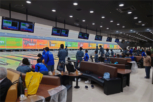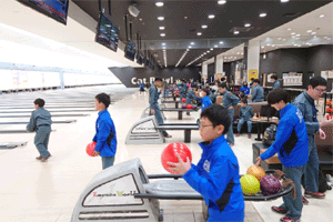 ストライクを狙い、真剣な表情で投球に臨む団員