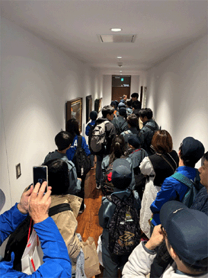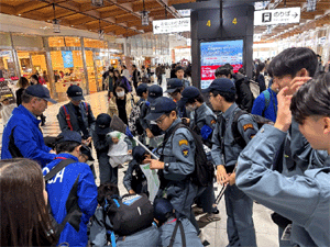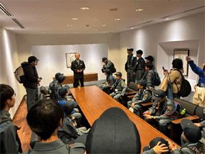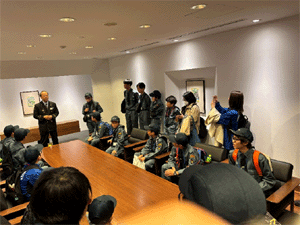 大分駅の貴賓室で末藤駅長から説明を受ける団員達