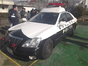 福岡県警の警察官の方からパトカーについて説明を受ける