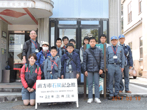 石炭記念館の前で記念撮影