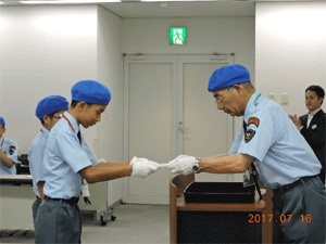 指導員から行動訓練を学ぶ団員