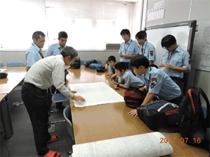 列車運行図表の見方の説明を受ける