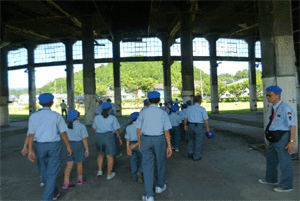 施設利用の注意事項を受ける団員