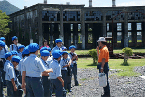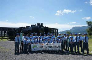 豊後森機関庫の前で集合写真