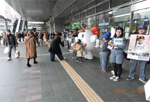 赤い羽根共同募金のマスコットキャラクター「愛ちゃん」と
