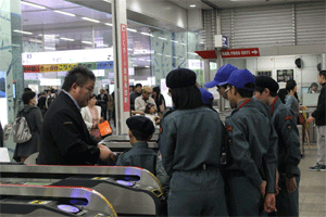 ホームの緊急列車停止ボタンの使用方法を聞く