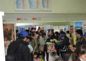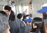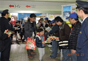 クリスマス列車に乗車されたお客様に交通安全チラシ配布