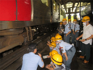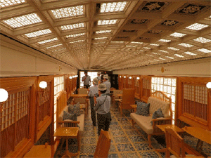 | 普段見るこのできないD&S列車「36プラス3」 の車内を見学する団員 |