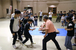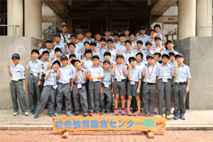| 指導者も童心に戻って「じゃんけん列車」にチャレンジ | 最終日、再開を誓いながら集合写真に収まる団員達 |