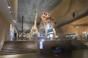 いのtのたび博物館で生命の進化から人の歴史までを 学習する団員達。 |