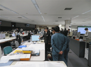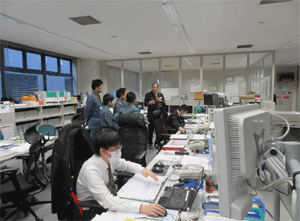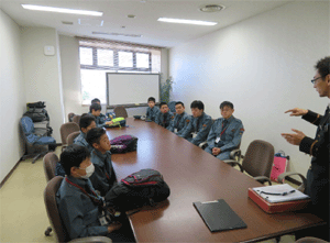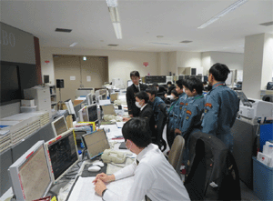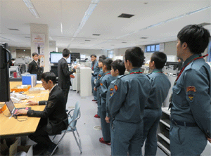 会議室で運行管理部の指令体制などについて