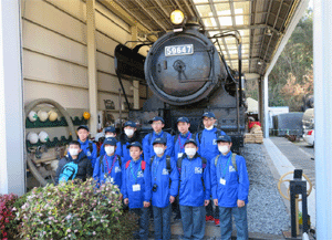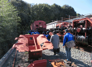 NPO法人「汽車倶楽部」の皆さんが現在修復中の SL「D51」を見学する |