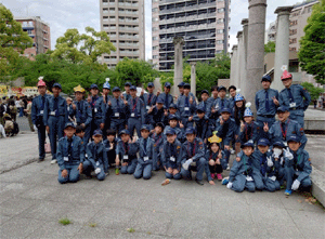 メインパレード終了後、記念の集合写真に収まる 九州4団の団員達 |