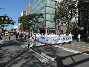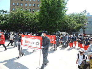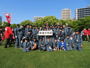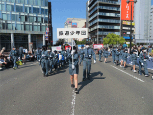 「鉄道少年団」のプラカードを掲げ堂々とパレードする