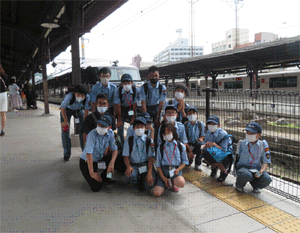 | 見学・実習を終えて記念写真を撮る | 門司港駅でD&S列車「36プラス3」のお見送り前に |