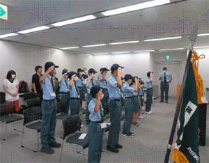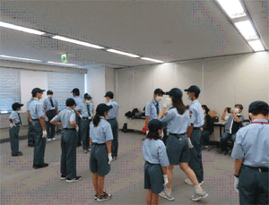 | 入団式終了後、指導者の指導の下新入団員と共に 団体行動訓練に汗を流す団員 |