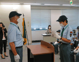 | 団長から「団員手帳」を授与される新入団員 | 新入団員を迎えての決意を表明する団員代表 |