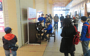 団員の「駅ピアノ」演奏に行き交うお客様も 足を止めて「うっとり!」 |