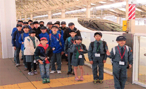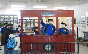 | 路面電車の変遷を学ぶ団員達 (長崎路面電車資料館) |
