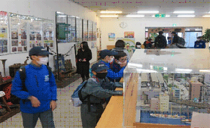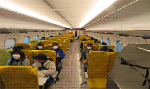 | 展示車両で学ぶ団員達 (長崎路面電車資料館) |